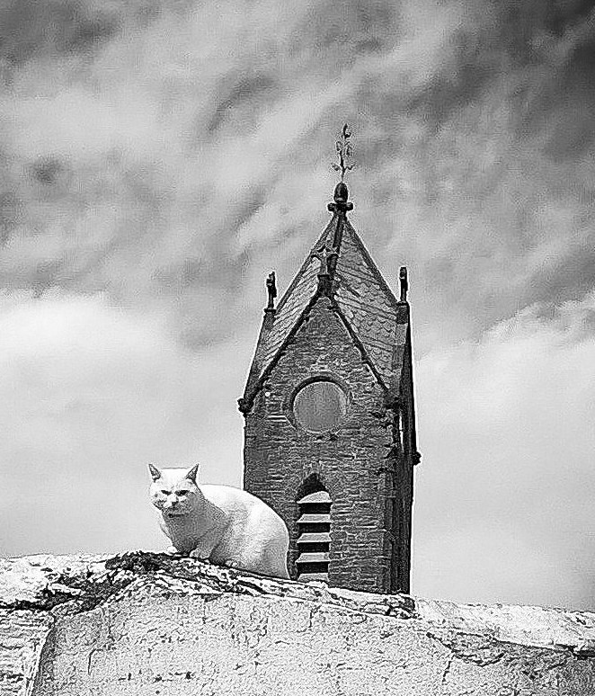 I rarely set out thinking ‘Today I want to take a picture of a really fierce-looking cat, guarding a clock tower with no clock.’