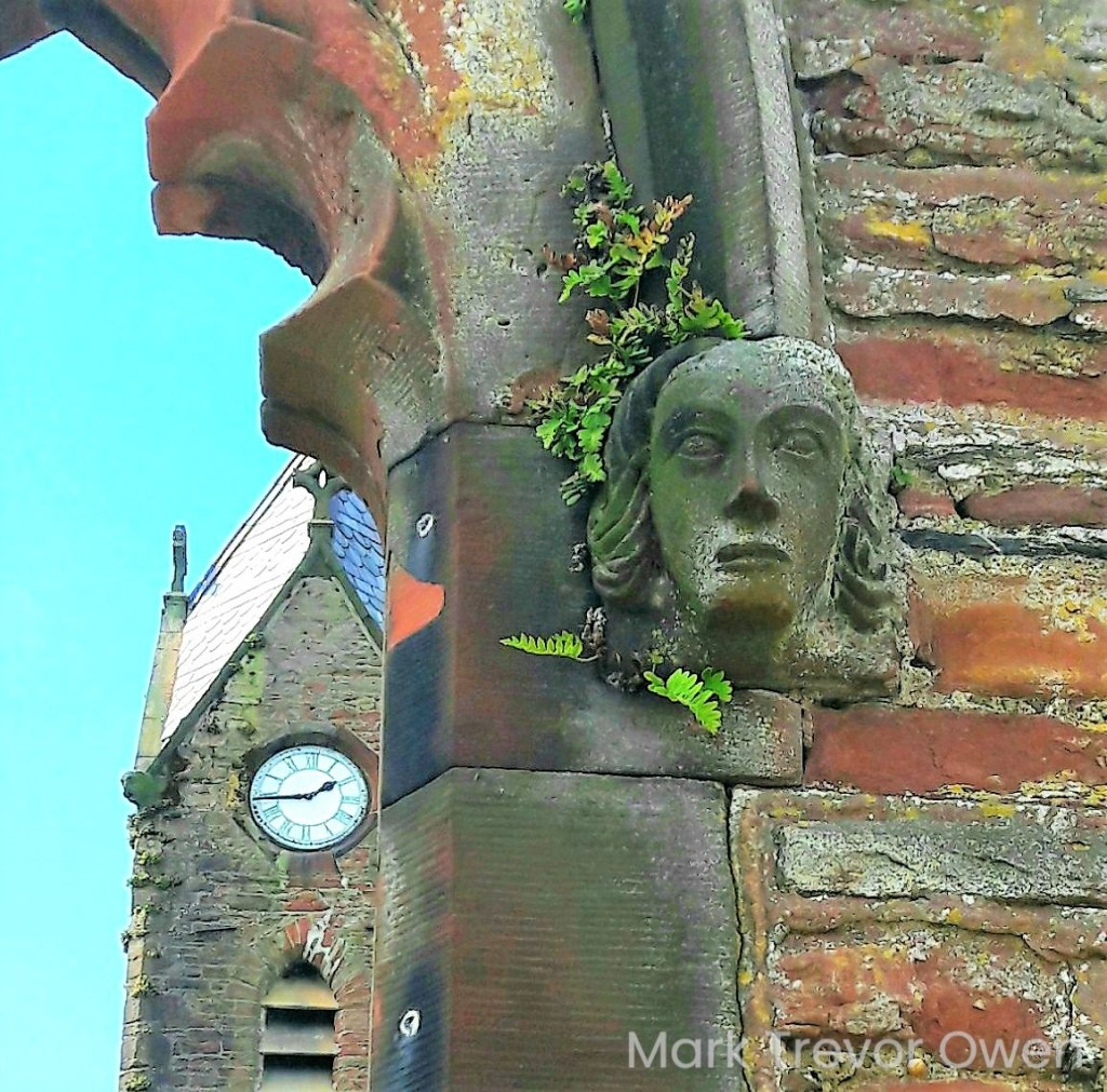 For example, I’ve no idea how many dozens – hundreds? – of times I’d been in Market Place in Peel before I noticed this ancient, androgynous little face staring out from the remains of the ruined St Peter’s Church.